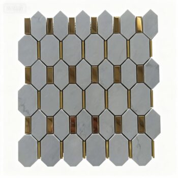 aluminium long hexagonal golden line waterjet Calacatta Mosaic tile