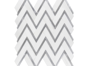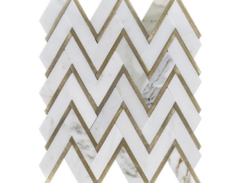 Rear panel inlaid with brass herringbone Mosaic tiles