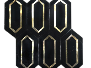 Long hexagonal white and grey marble Mosaic mixed-color tiles