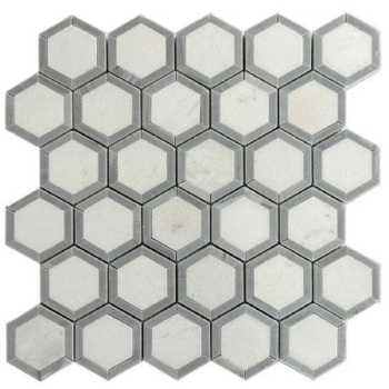 Carrara white, bardiglio Hexagonal waterjet marble Mosaic