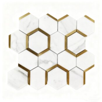 Calacatta Hexagonal mixed brass marble Mosaic tiles