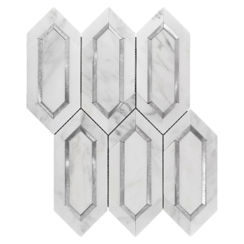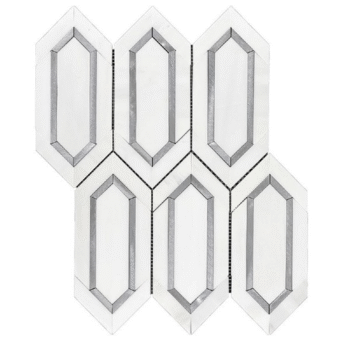 Long hexagonal white and grey marble Mosaic mixed-color tiles