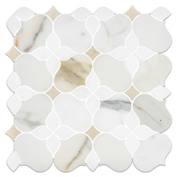 Modern jade marble inlaid with metal floral patterns waterjet Mosaic tiles