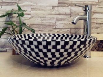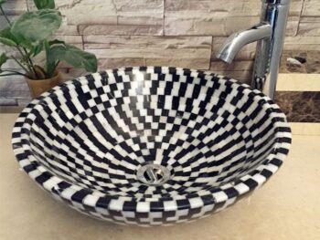 Black white mosaic sink , Vessel Bathroom Sink, Powder Room Sink Custom Vanity Top Natural Stone sinks (Copy) (Copy)