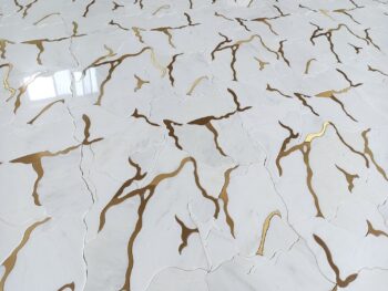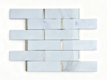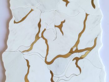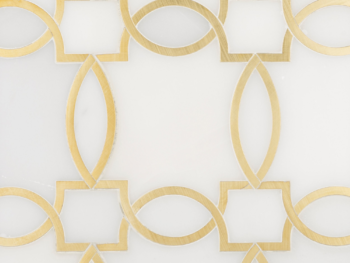 Brass texture design Mosaic waterjet cut pure white marble tiles