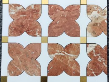 Rosso Alicante Pure White Brass Water-sprayed marble Mosaic