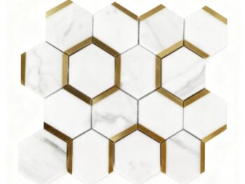 Calacatta Hexagonal mixed brass marble Mosaic tiles