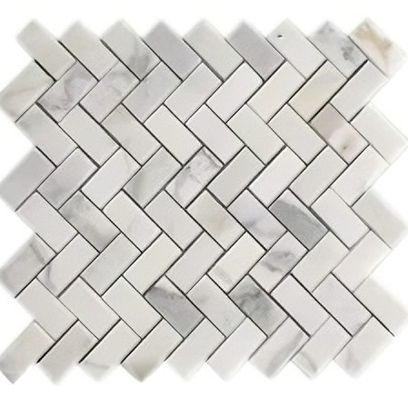 Calacatta white marble herringbone mosaic tiles are available in different size according to clients’ request. It’s popular used in residential or commercial buildings .