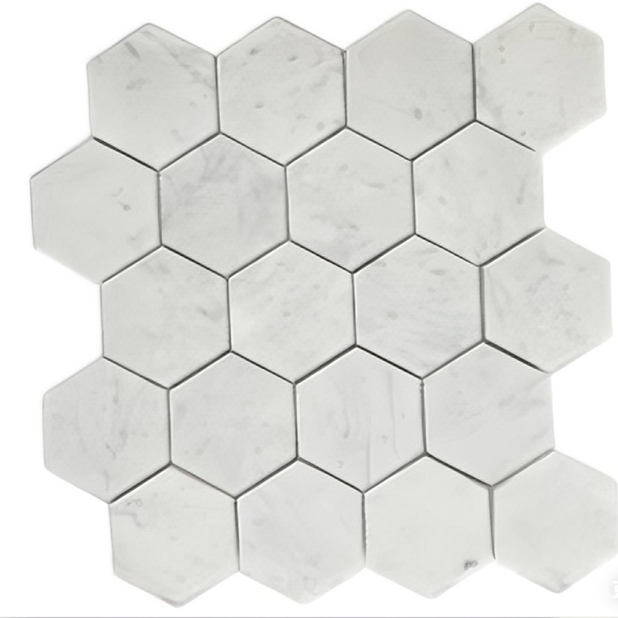 Carrara Marble hexagon mosaic tiles are available in standard size and custom sizes according to clients’ specific request. It’s popular used in residential or commercial buildings .