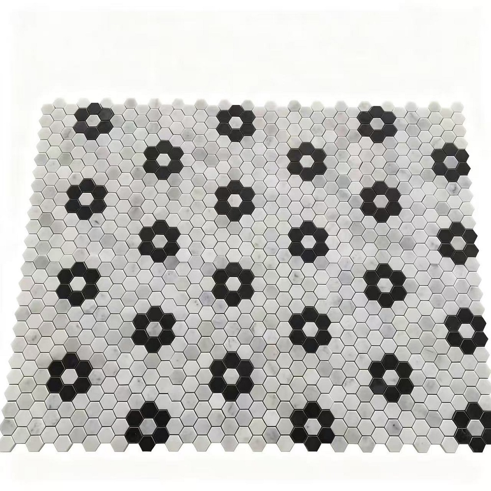 Elegant and classic floral pattern mosaic white and black mixed hexagonal Mosaic