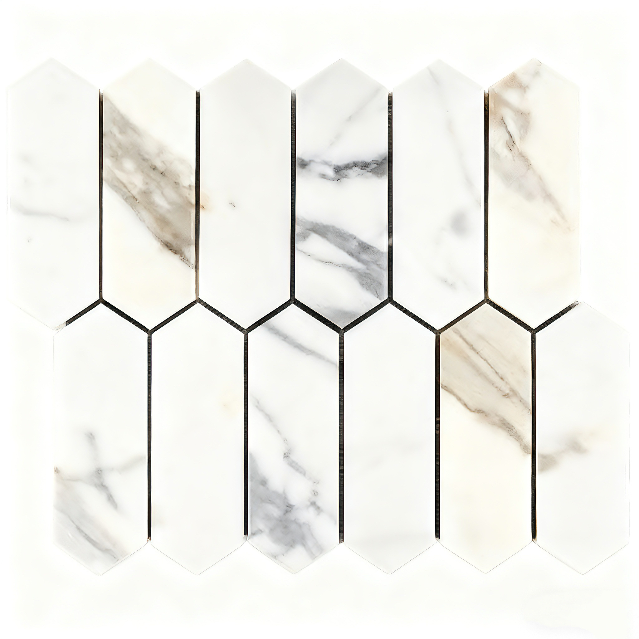 long hexagon Marble mosaic Tiles, marble hexagon mosaic tile Calacatta white